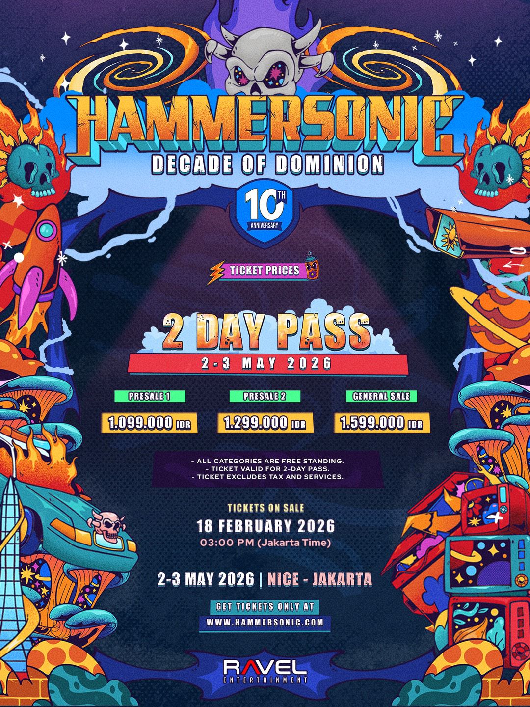 1. Tiket resmi hanya dijual melalui situs www.hammersonic.com atau Official Ticketing Partner yang ditunjuk oleh promotor. Promotor tidak bertanggung jawab atas segala bentuk penipuan tiket yang dibeli dari pihak lain.